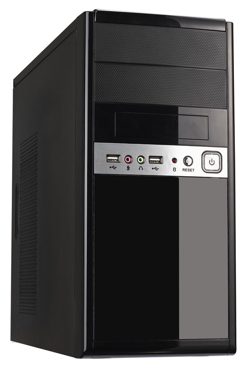 Stylish Mid-Tower Gaming PC Case The CiT Galaxy, presented in a sleek all-black finish, incorporates a carbon fibre effect on the front panel, enha...